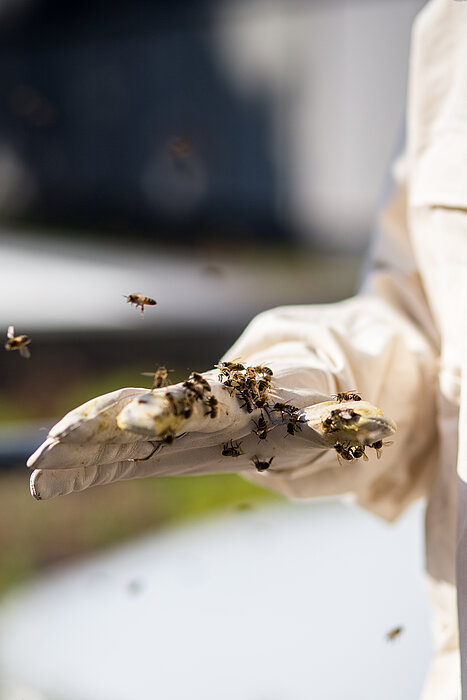 Damit Simon Hauser sich nicht allein um das Volk kümmern muss und auch, damit es die Bienen auf dem Campus noch gibt, wenn er nicht mehr studiert, hat der Student auf dem Hochschulsommerfest für sein Projekt geworben. Dadurch hat er drei Mitstreiter gewonnen. Die seien zwar noch nicht so erfahren in der Imkerei, können aber von ihm lernen und ihn unterstützen. Rund um die Bienen entsteht also gerade eine kleine Hochschulgruppe.